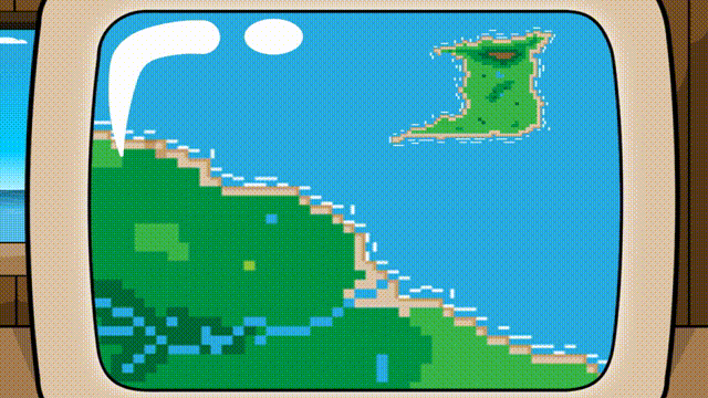 I'm working on the map selection for my game, Tropi. I wanted it to be shown the perspective of one of the main characters looking at an old PC displaying a map of the Caribbean in 8-bit graphics. Here, you'll see South America and Trinidad.